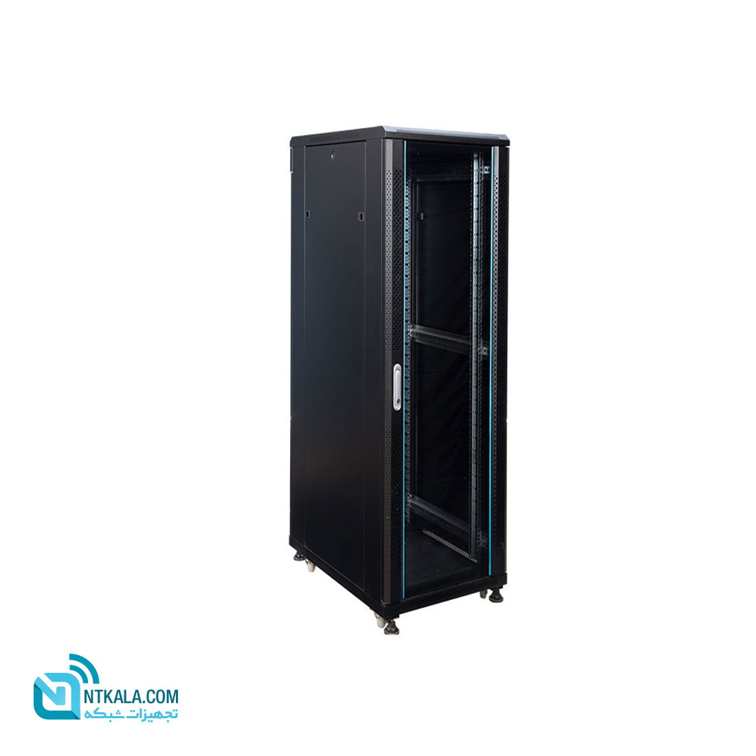 در داخل این رک، ۴ آداپتور عمودی (ستون) با قابلیت جابجایی و شش آداپتور افقی وجود دارد که میتوانید متناسب با تجهیزات داخل رک، آنها را تنظیم کنید.